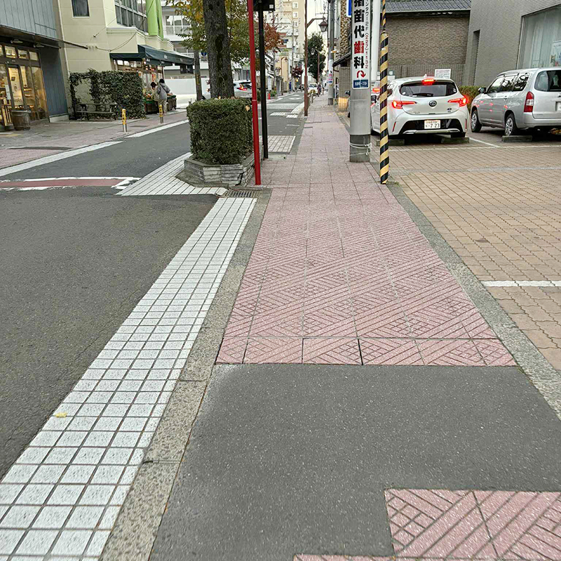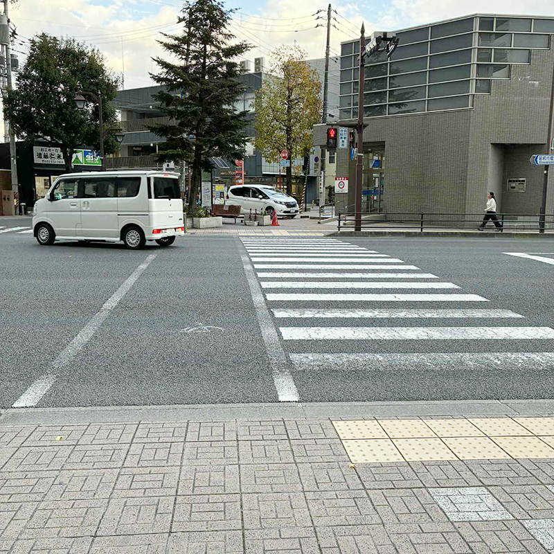 横断歩道を七十七銀行の方に渡ります